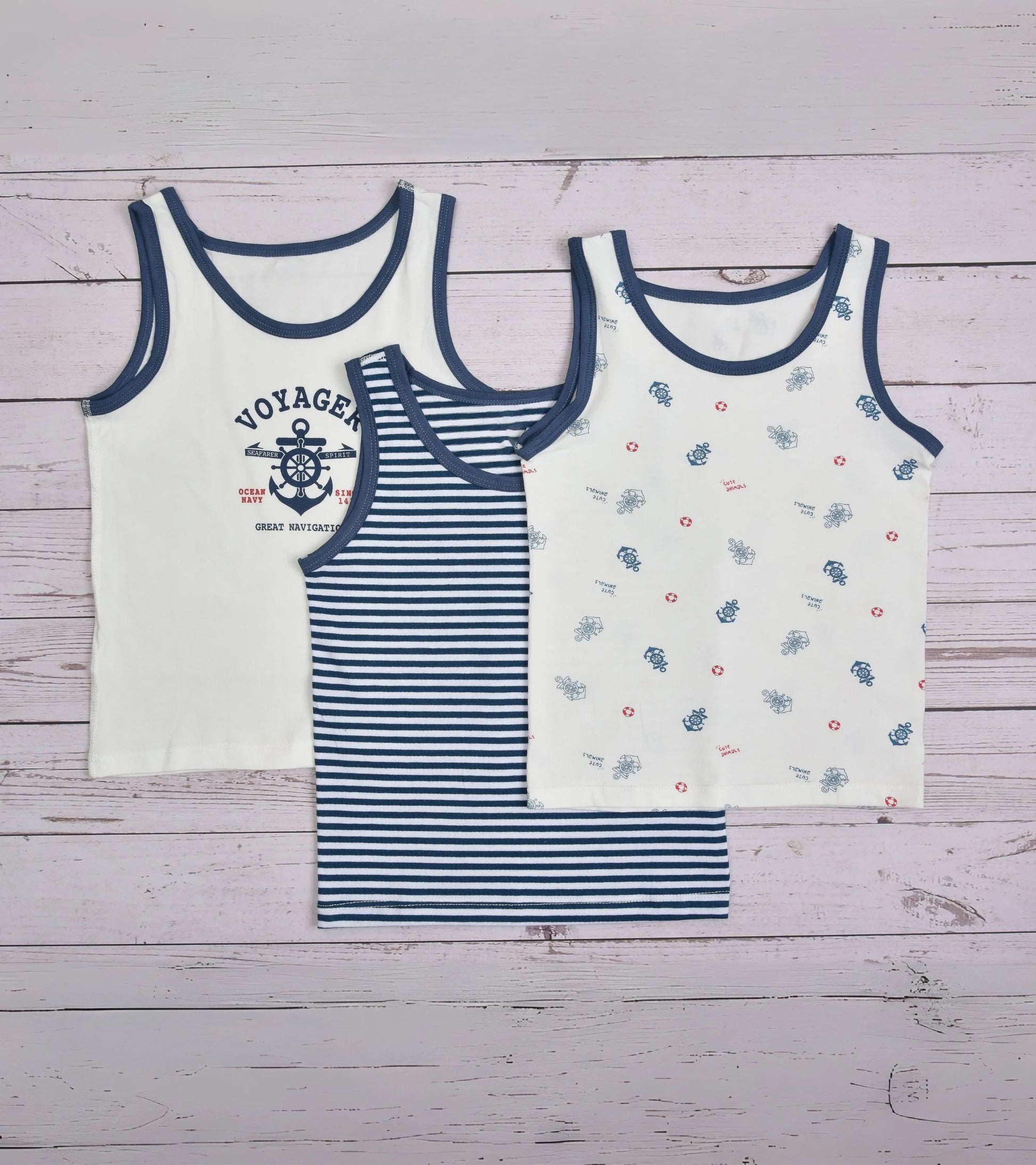 Premsons® Set of 3 Boys’ Vests – Sailor Theme Print, Gentle Cotton Fabric
