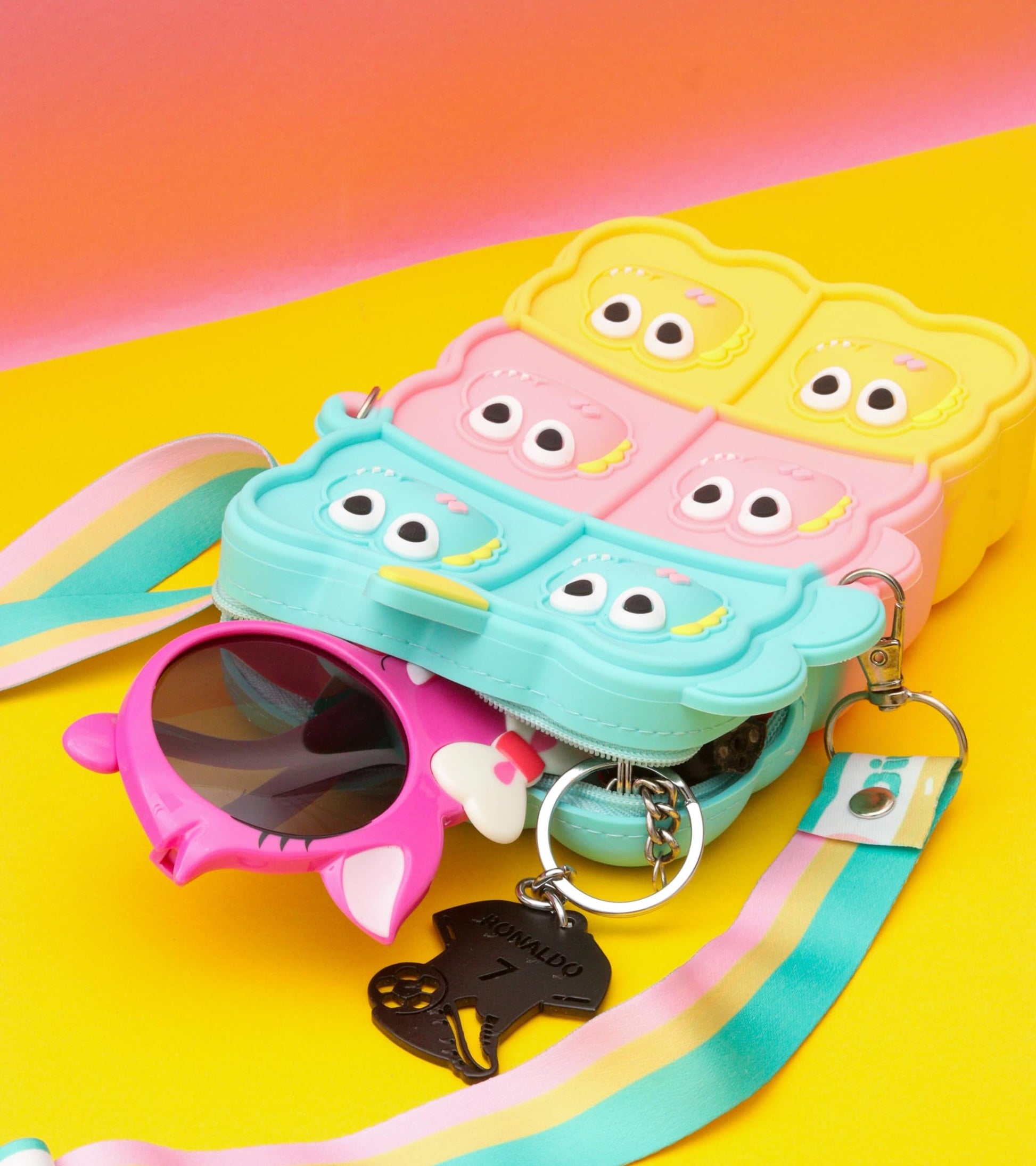 Premsons® Silicone Pop It Sling Bag for Kids – Fun & Functional Mobile Holder with Sensory Fidget Design | Crossbody Bag - (Green, Pink & Yellow)
