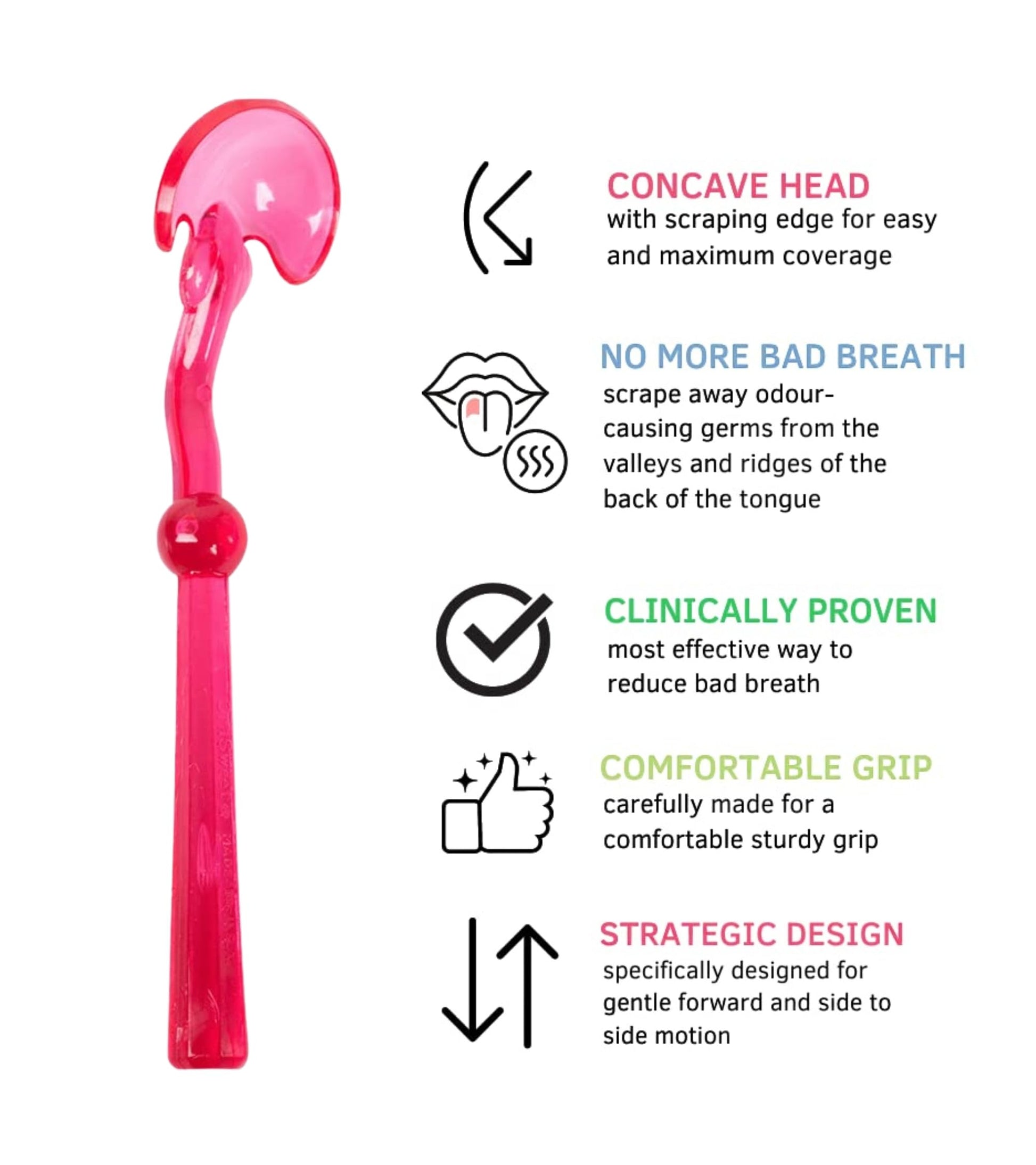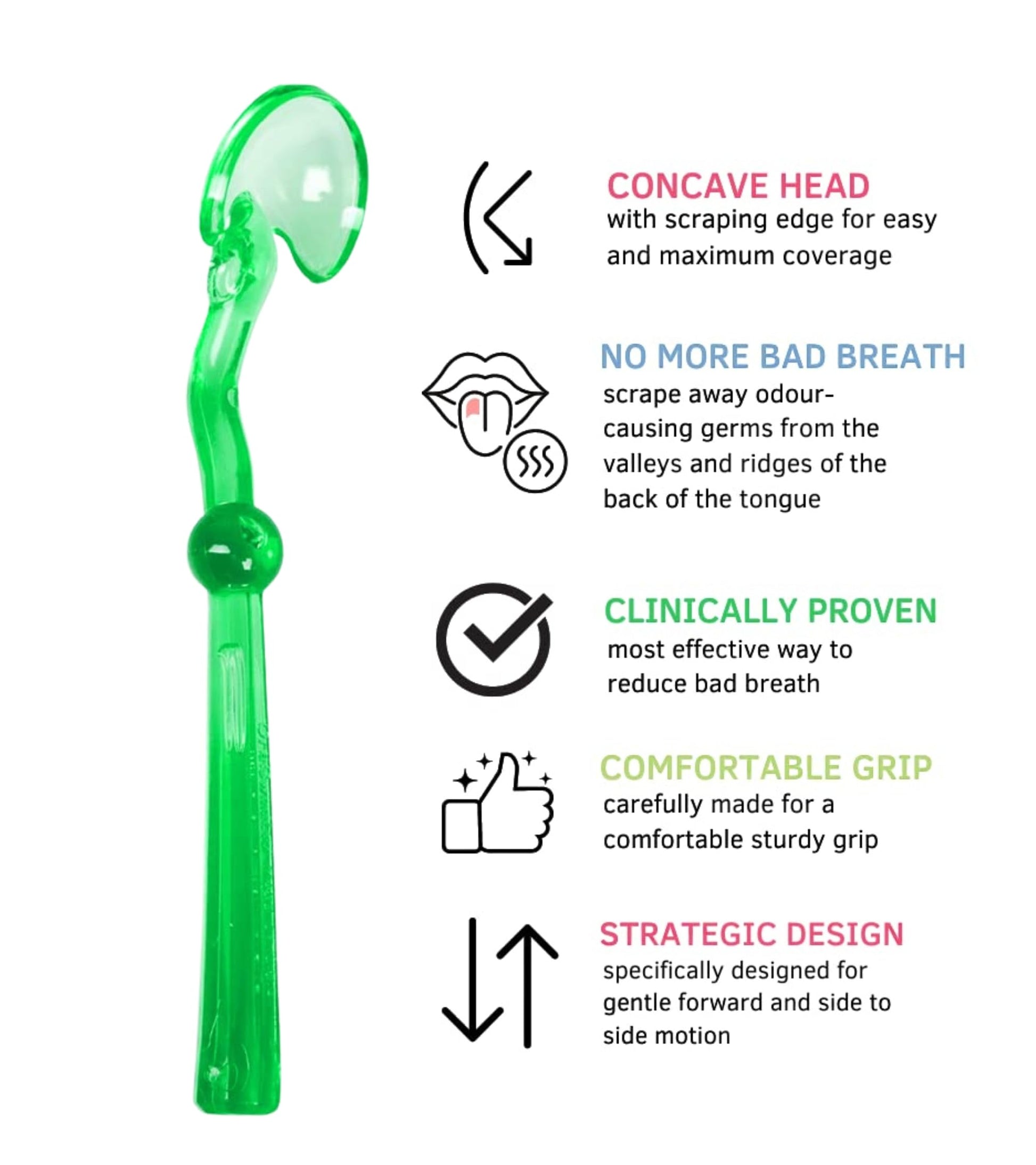 👅 Concave for Comfort: The specially designed curve fits the natural contours of your tongue, ensuring thorough cleaning with every stroke. Experience a deeper, gentler clean compared to traditional scrapers.