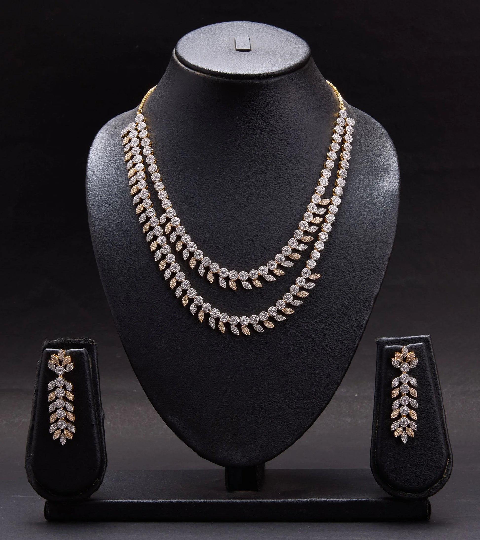 Premsons® Two-Layered Crystal Diamond Necklace and Earrings Set – Contemporary Party Wear Sparkle