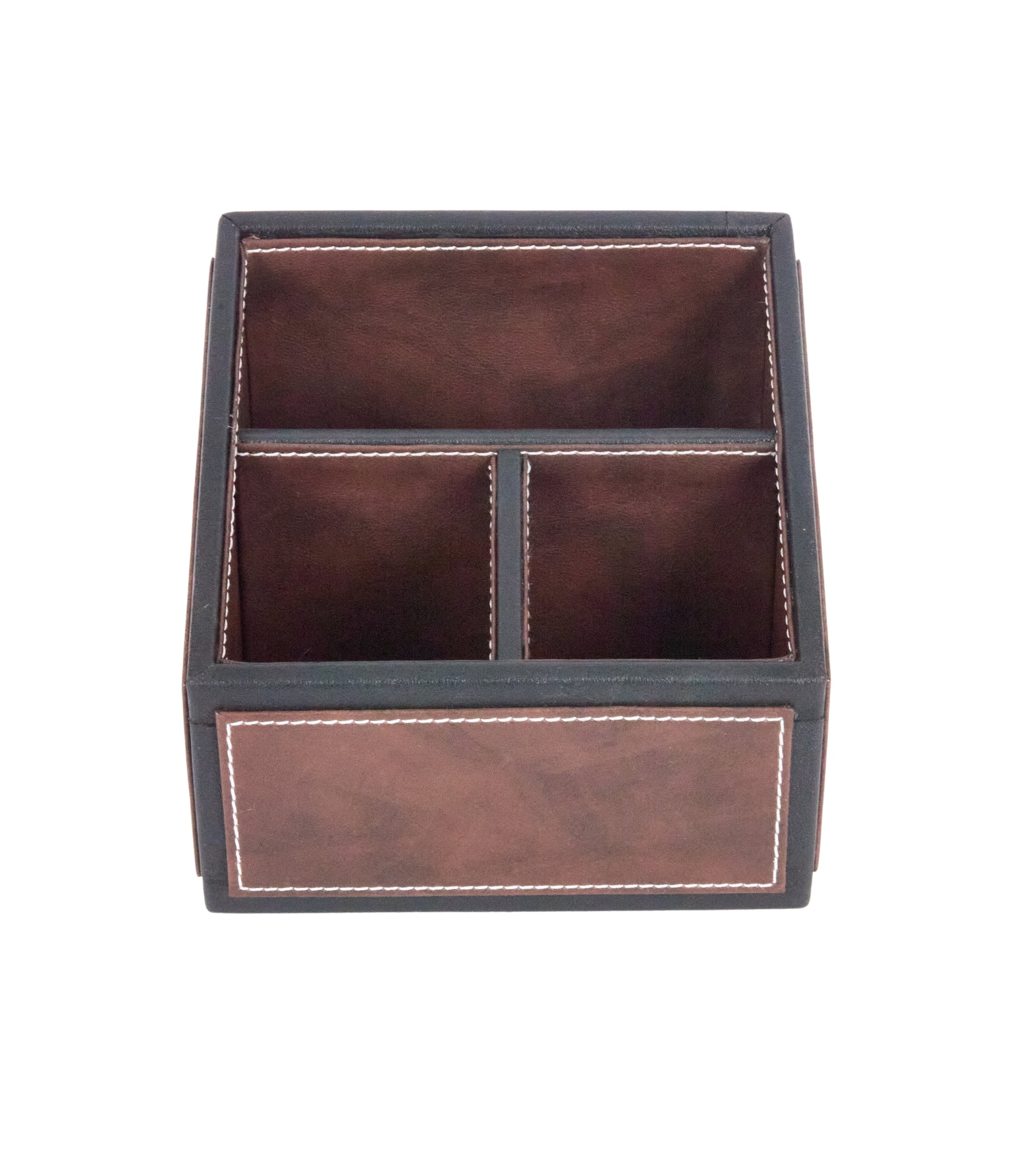 Premsons® Two Tone Remote Holder - Stylish Organizer - 3 Compartments - Rectangle - Dark Brown