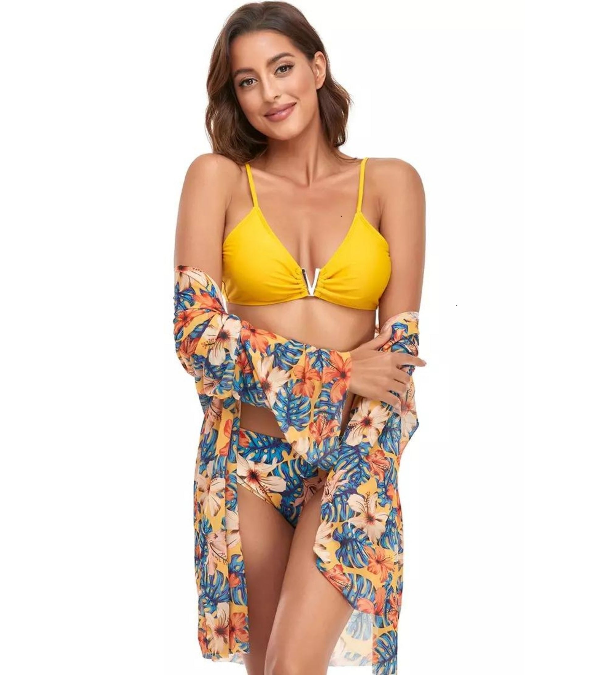 Turn up the tropical vibes with this vibrant floral bikini set! Includes a solid V-notch top, matching floral bottoms, and a breezy cover-up – perfect for beach days, pool parties, and vacations. Breathable, skin-friendly, and made for fun in the sun!