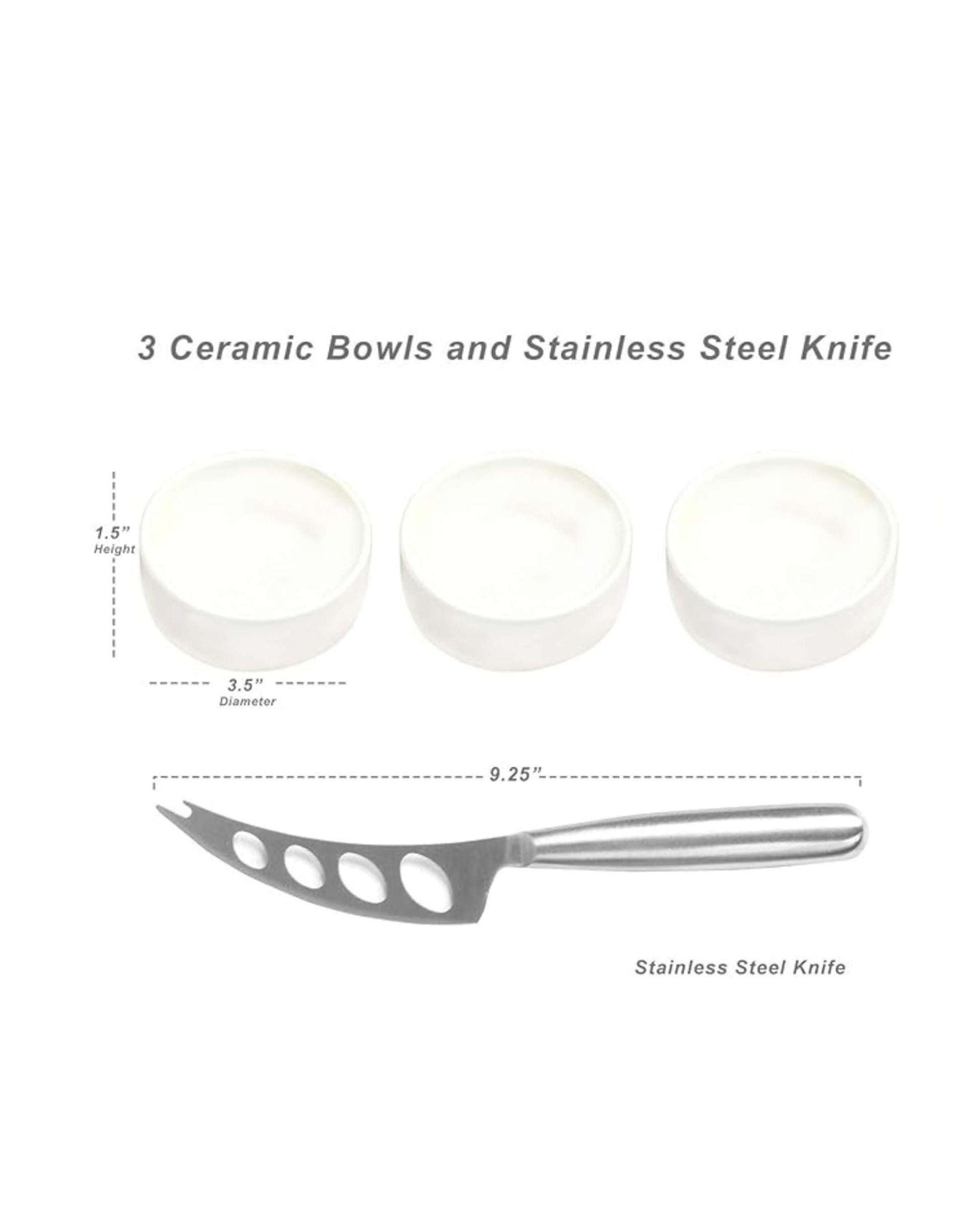 Premsons® Bamboo Cheese Board & Knife Set - Includes 1 Knife + Ceramic Bowls - Rectangle Serving Tray for Snacks Appetizers Cheese Fruits Crackers - Ideal for Home Party Dinner Special Occasions