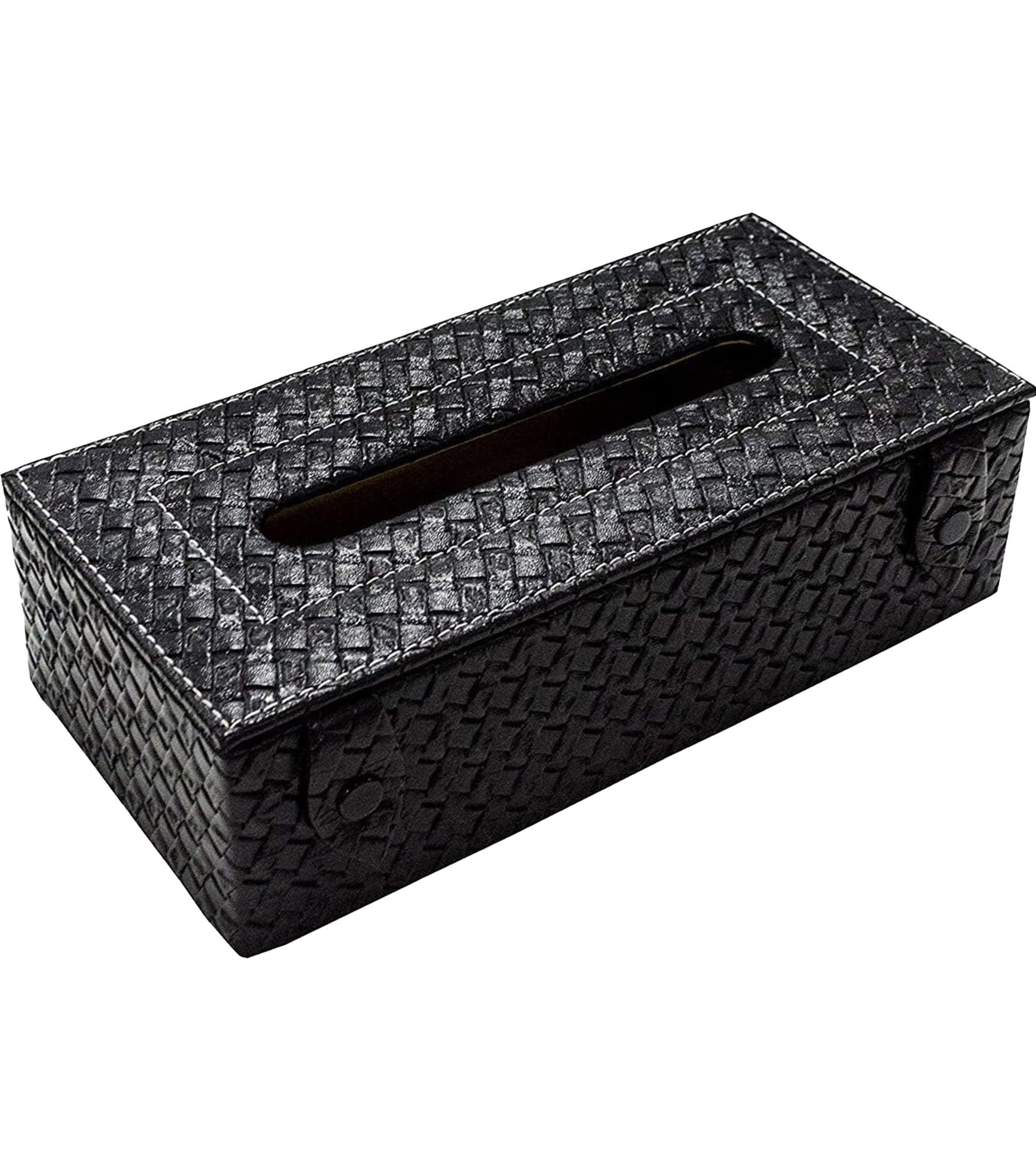Premsons Bazaar® Woven Design Artificial Faux/Vegan Leatherette Rectangular Tissue Paper Box with Button for Dining Room, Kitchen, Bedroom, Car and Home Decor - Black