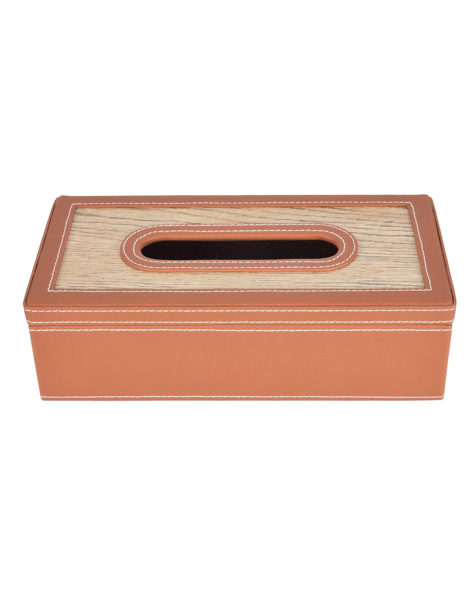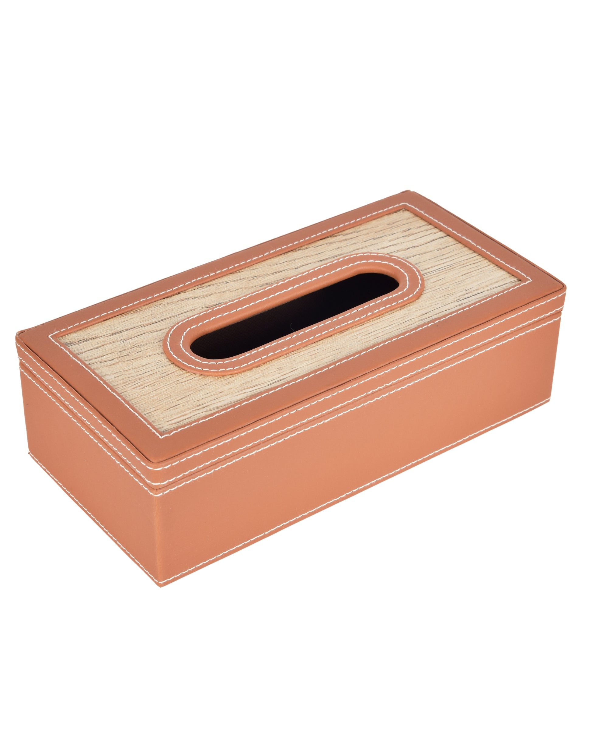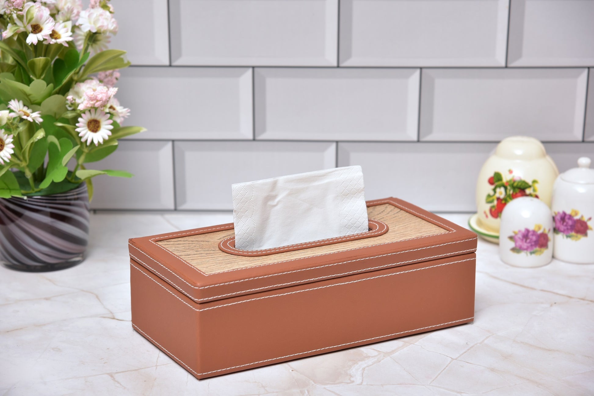 Premsons® Classic Rectangular Tissue Holder – Elegant Leatherette Tissue Box with Wooden Top Finish for Home, Office & Car – Stylish, Durable & Functional Tissue Dispenser for Everyday Use(Orange)