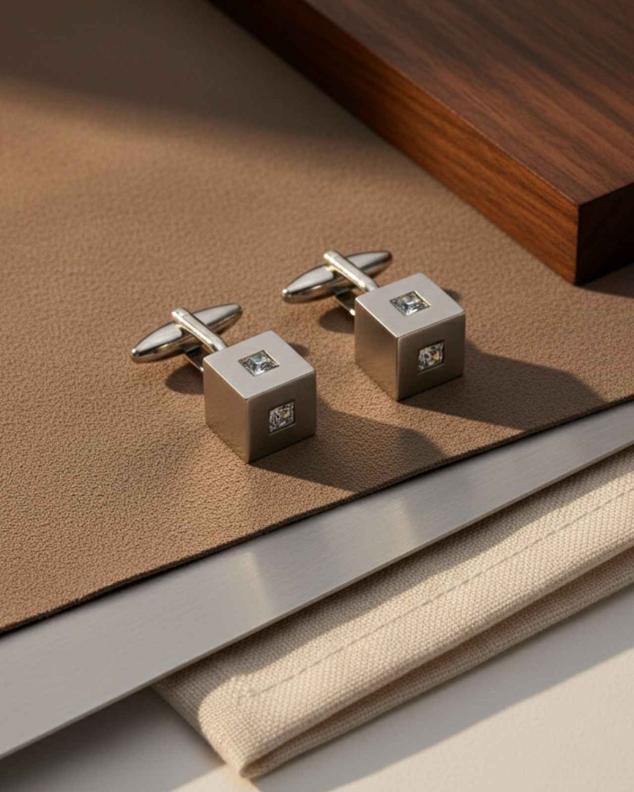 The Premsons® Men’s Cube Silver Cufflinks with Clear Crystal Inlay are designed for men who appreciate clean design with a touch of refined luxury. The bold cube shape offers a modern, architectural feel, while the clear crystal inlay adds subtle shine without overpowering the minimalist aesthetic. Finished in polished silver tone, these cufflinks feel sleek, contemporary, and effortlessly elegant.