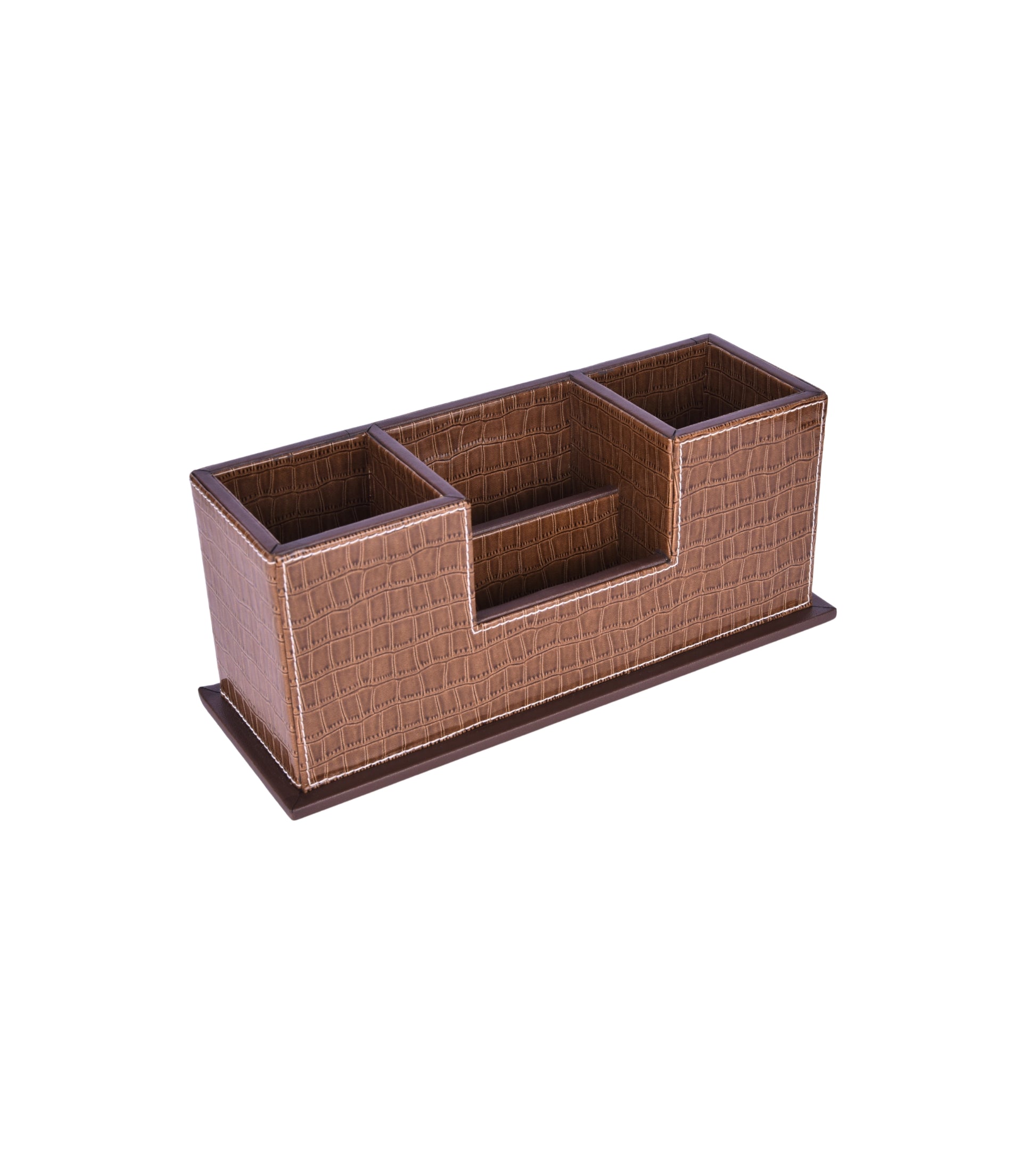 Premsons® Desk Organizer Croc Vegan Leather - Stylish Brown Leatherette Organizers for Home & Office - Durable Faux Leather Stationery Holder, Elegant Design - Brown Colour