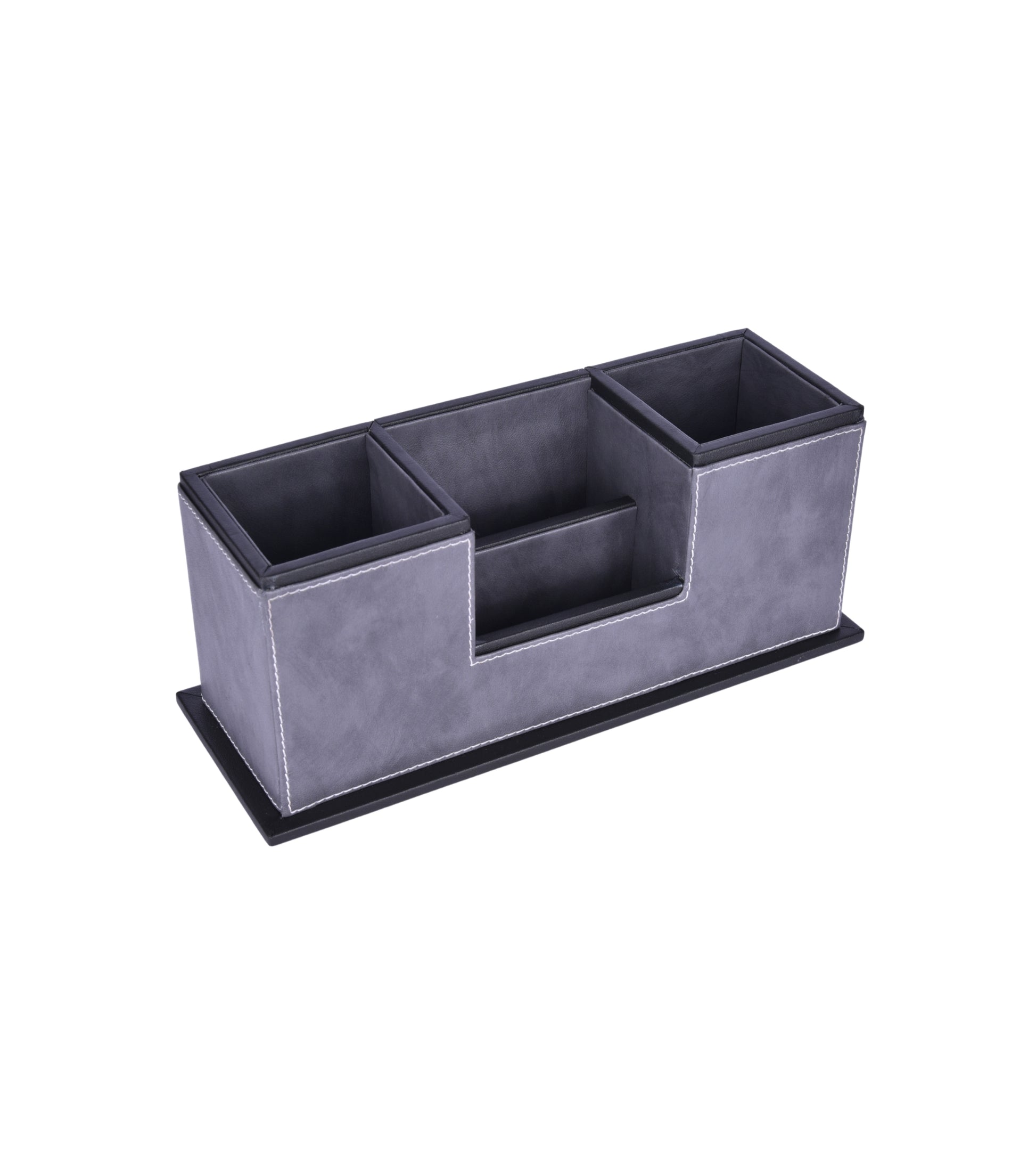 Premsons® Desk Organizer Two-Tone Vegan Leather - Stylish Grey Leatherette Organizers for Home & Office - Durable Faux Leather Stationery Holder, Elegant Design - Dark Grey + Light Grey Colour
