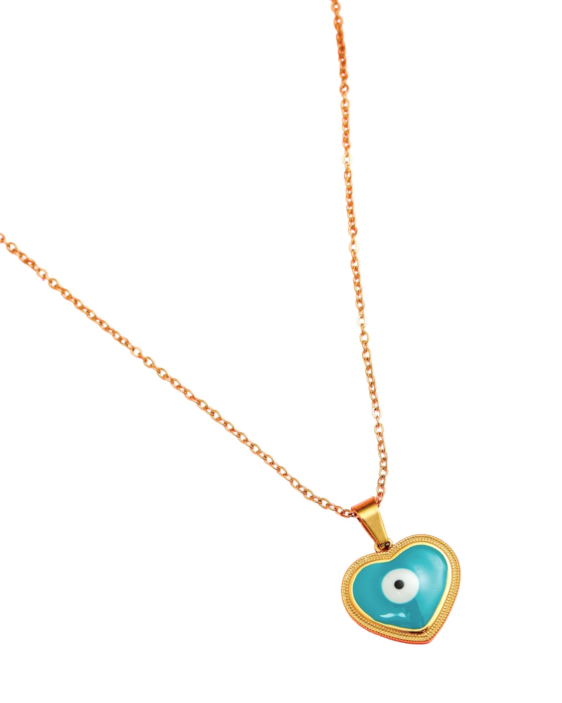 Premsons® Evil Eye Stainless Steel Necklace | Heart Style Pendant for Protection & Elegance - Gold & Blue