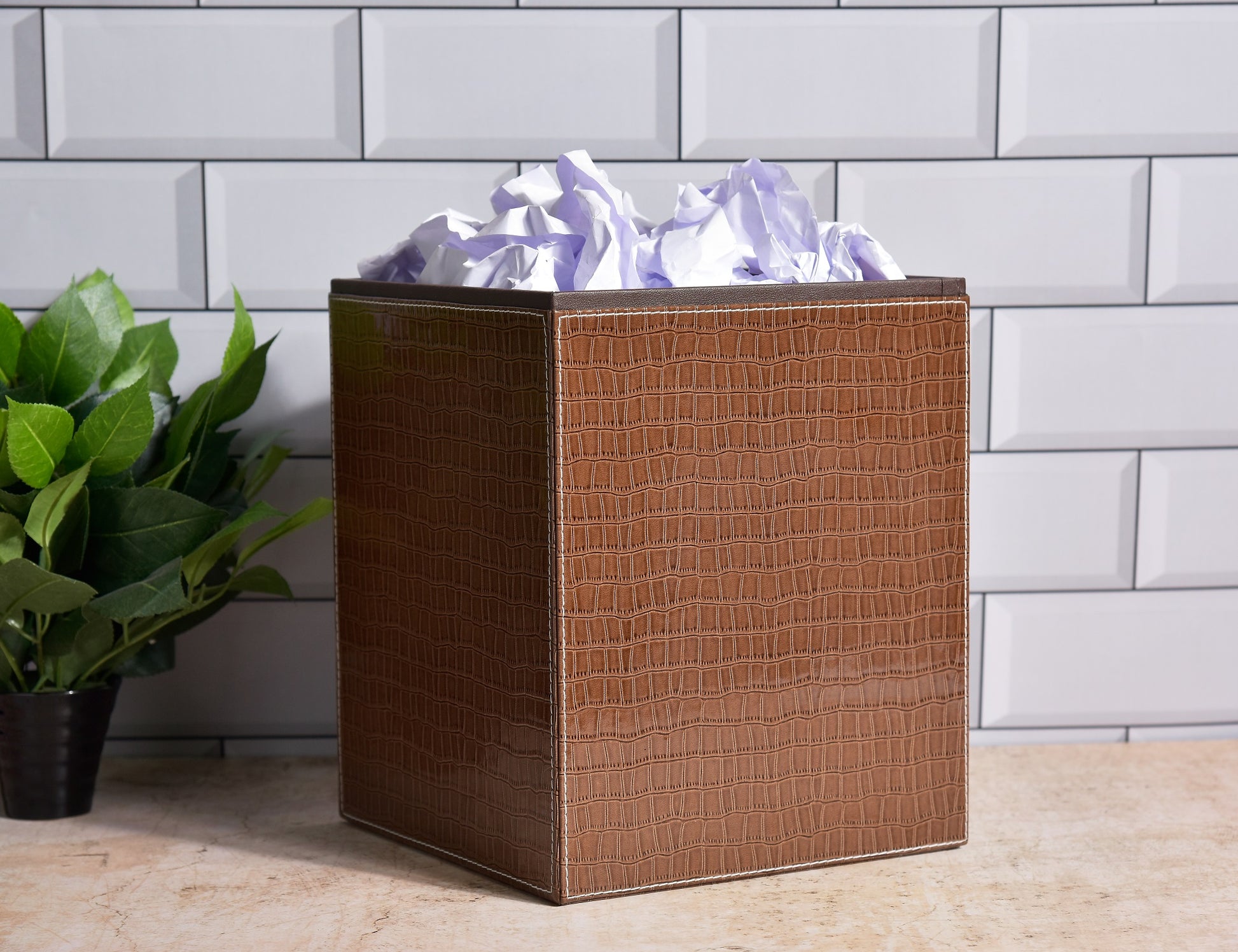 Premsons® Faux Leather Dustbin - Stylish & Durable Waste Bin for Home, Office, & Bedroom - Croc Pattern - Square - Brown - 5 litres