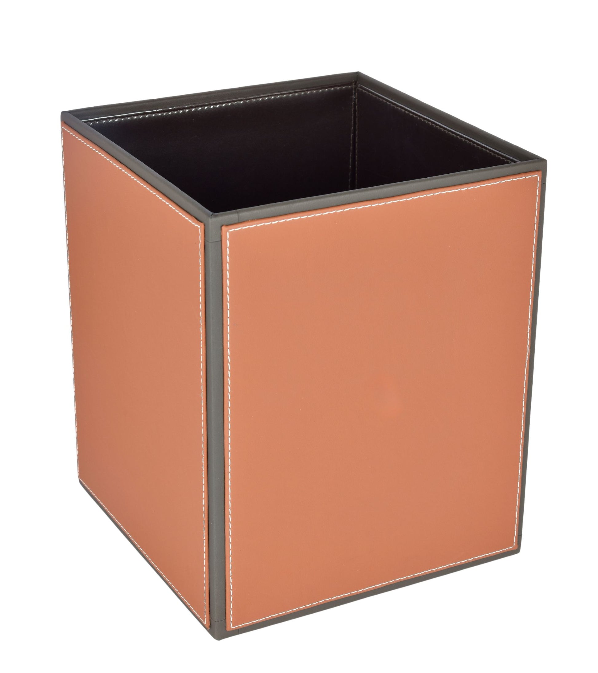 Premsons® Faux Leather Dustbin - Stylish & Durable Waste Bin for Home, Office, & Bedroom - Two Tone Square - Orange + Grey - 5 Litres