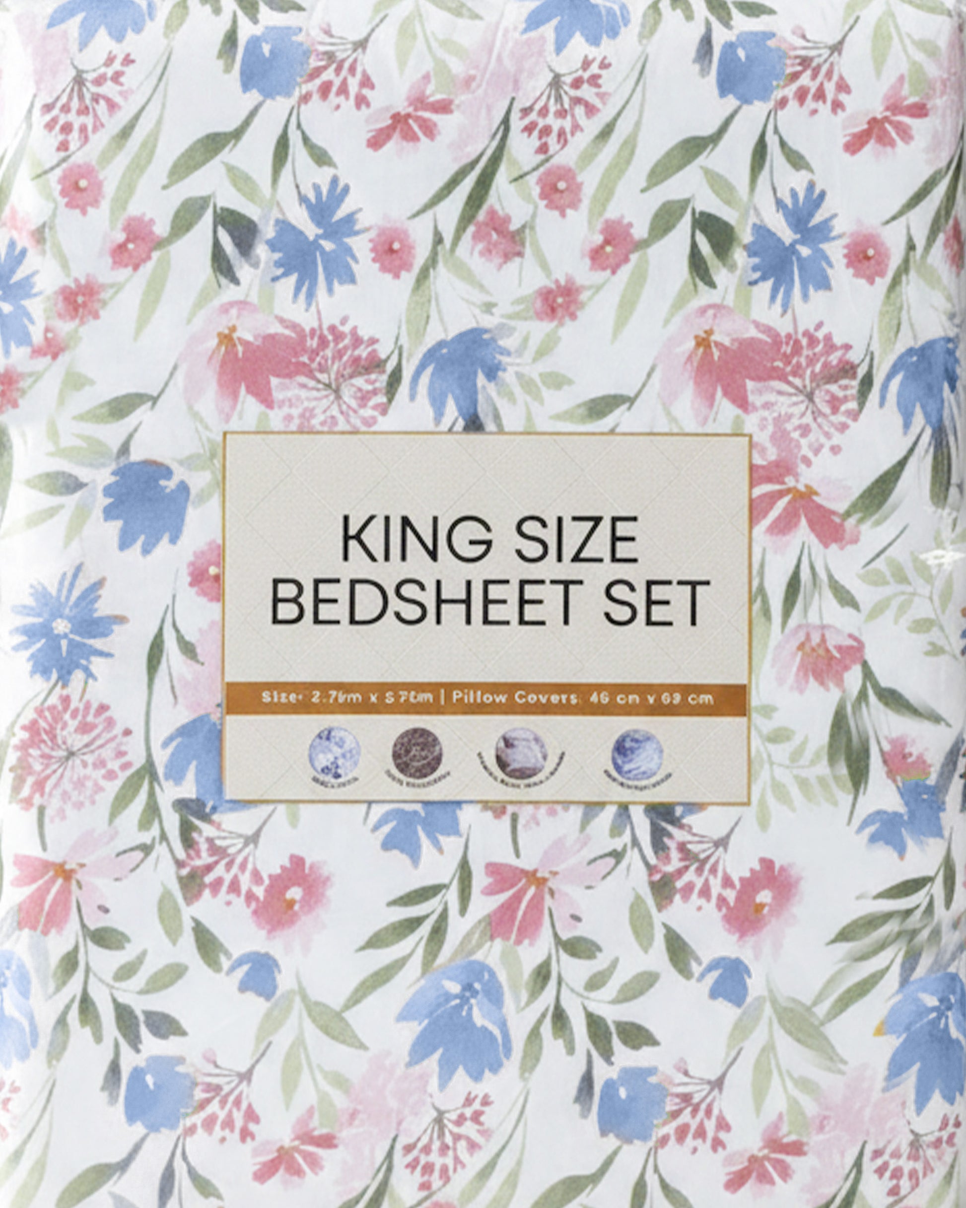 Give your bedroom a fresh and elegant makeover with the Premsons Floral Print King Size Bedsheet in Pink & Blue. Crafted from soft and breathable fabric, this bedsheet offers a smooth touch and long-lasting comfort for everyday use. The vibrant floral design adds a cheerful charm to your décor while the king-size dimensions ensure full mattress coverage with a neat, wrinkle-free look. Perfect for modern as well as classic interiors, this bedsheet blends style, durability, and comfort in one beautiful package. Ideal for homes, guest rooms, or gifting purposes, it is easy to wash, fade-resistant, and designed to retain its color and softness over time. 🌸🛏️