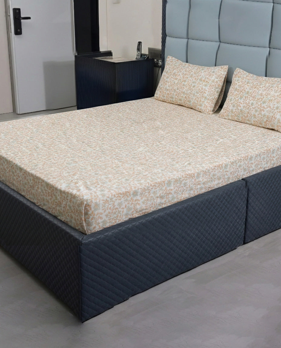 Premsons® Floral Print King Size Bedsheet – Yellow Soft Cotton Double Bed Sheet with Matching Pillow Covers