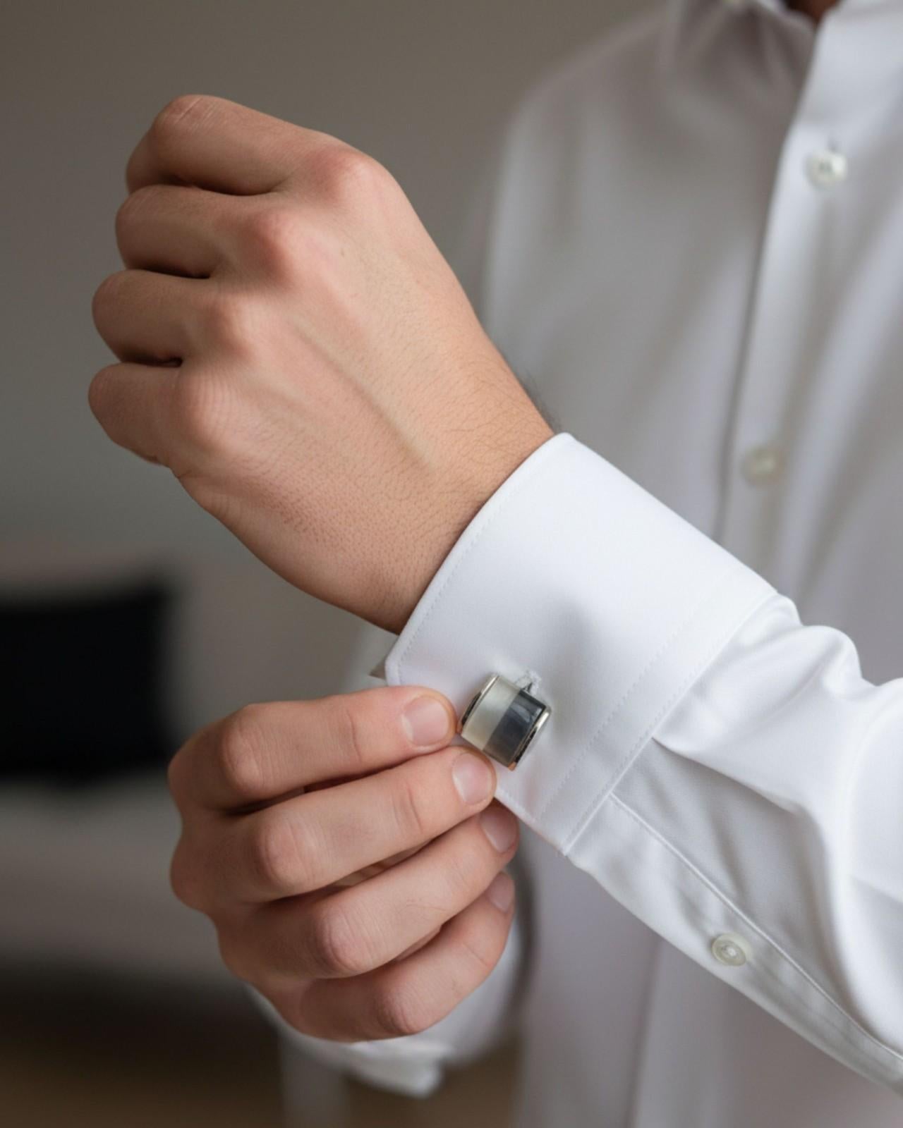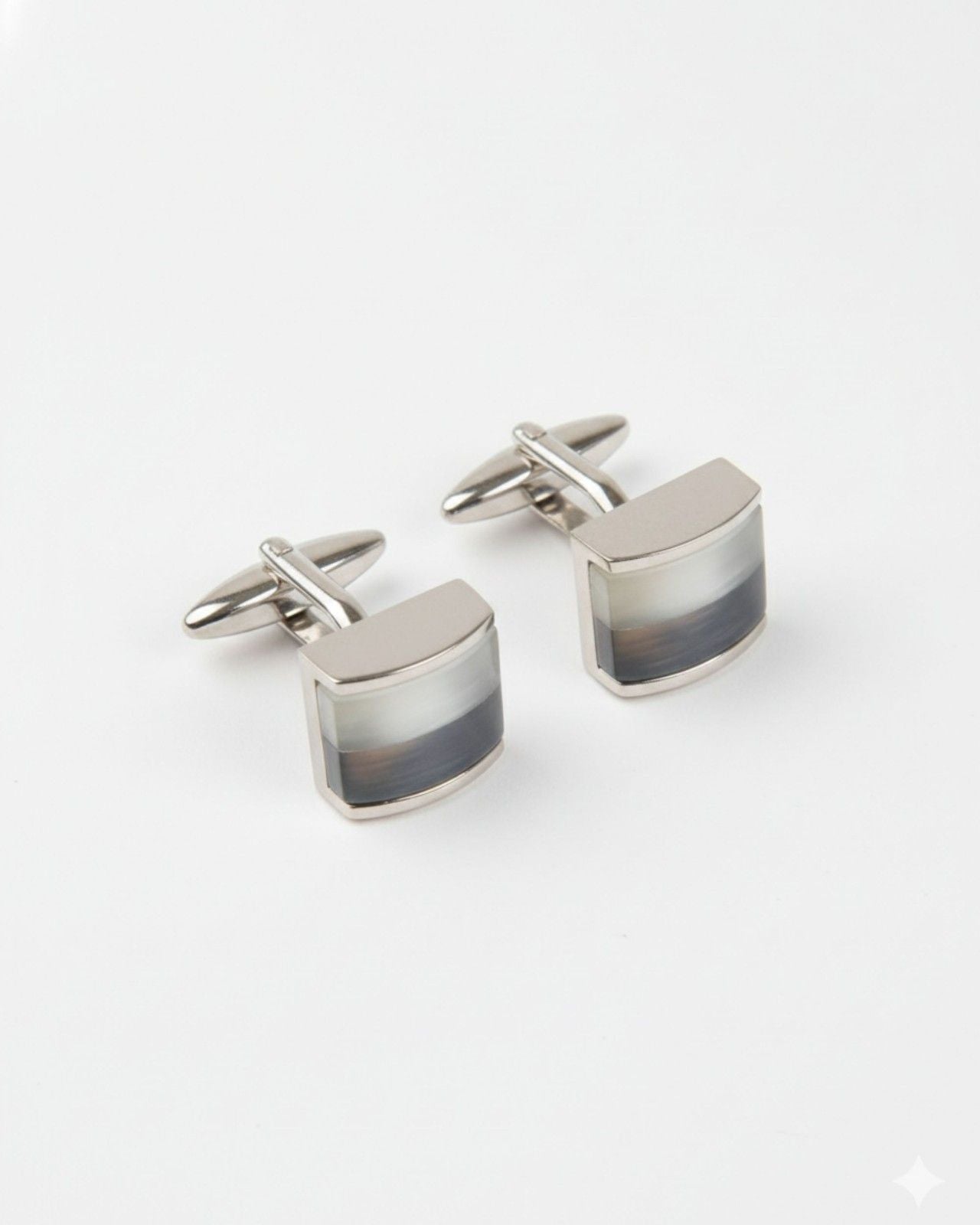 The Premsons® Curved Rectangular Silver Tone Cufflinks with Grey Gradient Inlay are designed for men who appreciate clean lines with a modern twist. The smooth curved rectangular shape softens the structured silhouette, while the subtle grey gradient inlay adds depth and contemporary appeal. Finished in a sleek silver tone, these cufflinks feel refined, understated, and effortlessly stylish.