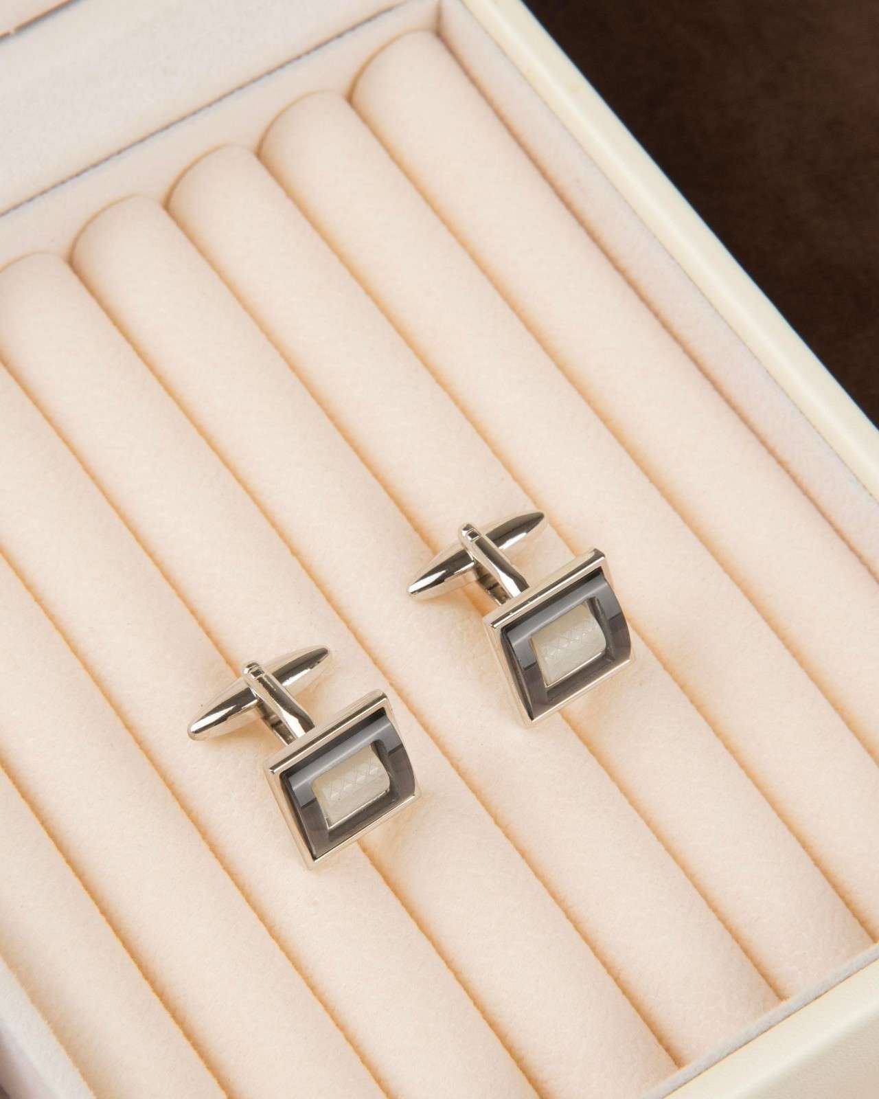 Premsons® Men’s Square Silver Cufflinks with Abstract Stone & Enamel Inlay, Modern Designer Accessories