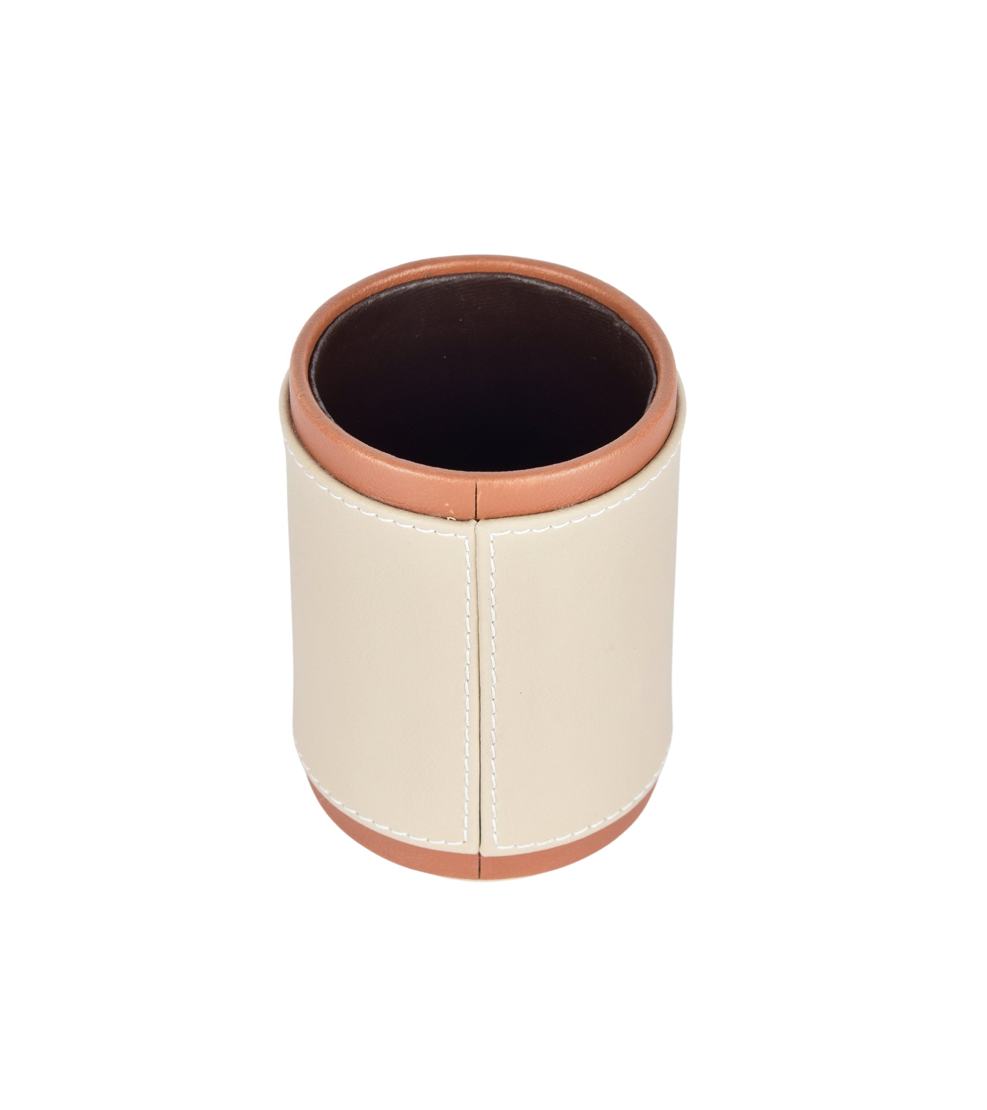 Premsons® Pen Stand Two-Tone Vegan Leather - Stylish Beige & Orange Leatherette Desk Organizer for Home & Office - Durable Faux Leather Stationery Holder, Elegant Design