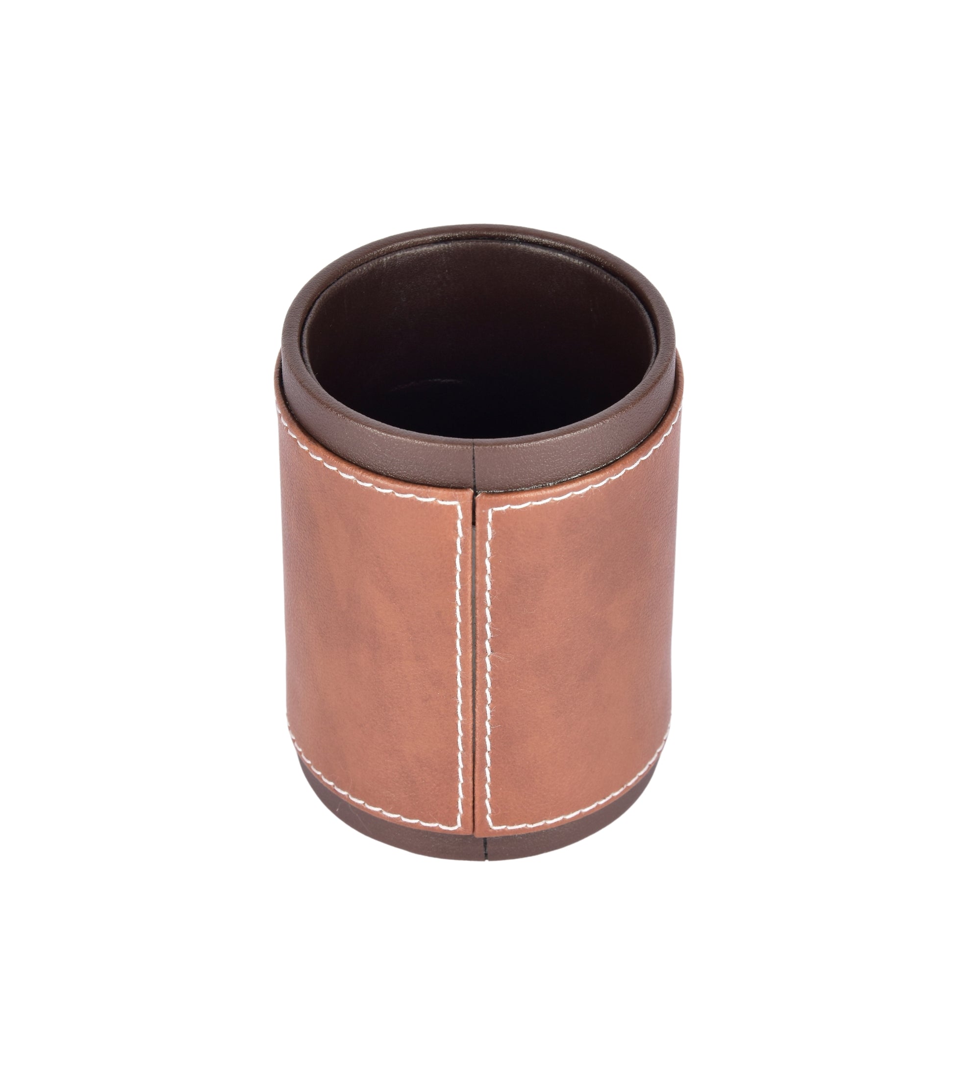Premsons® Pen Stand Two-Tone Vegan Leather - Stylish Dark Orange & Brown Leatherette Desk Organizer for Home & Office - Durable Faux Leather Stationery Holder, Elegant Design
