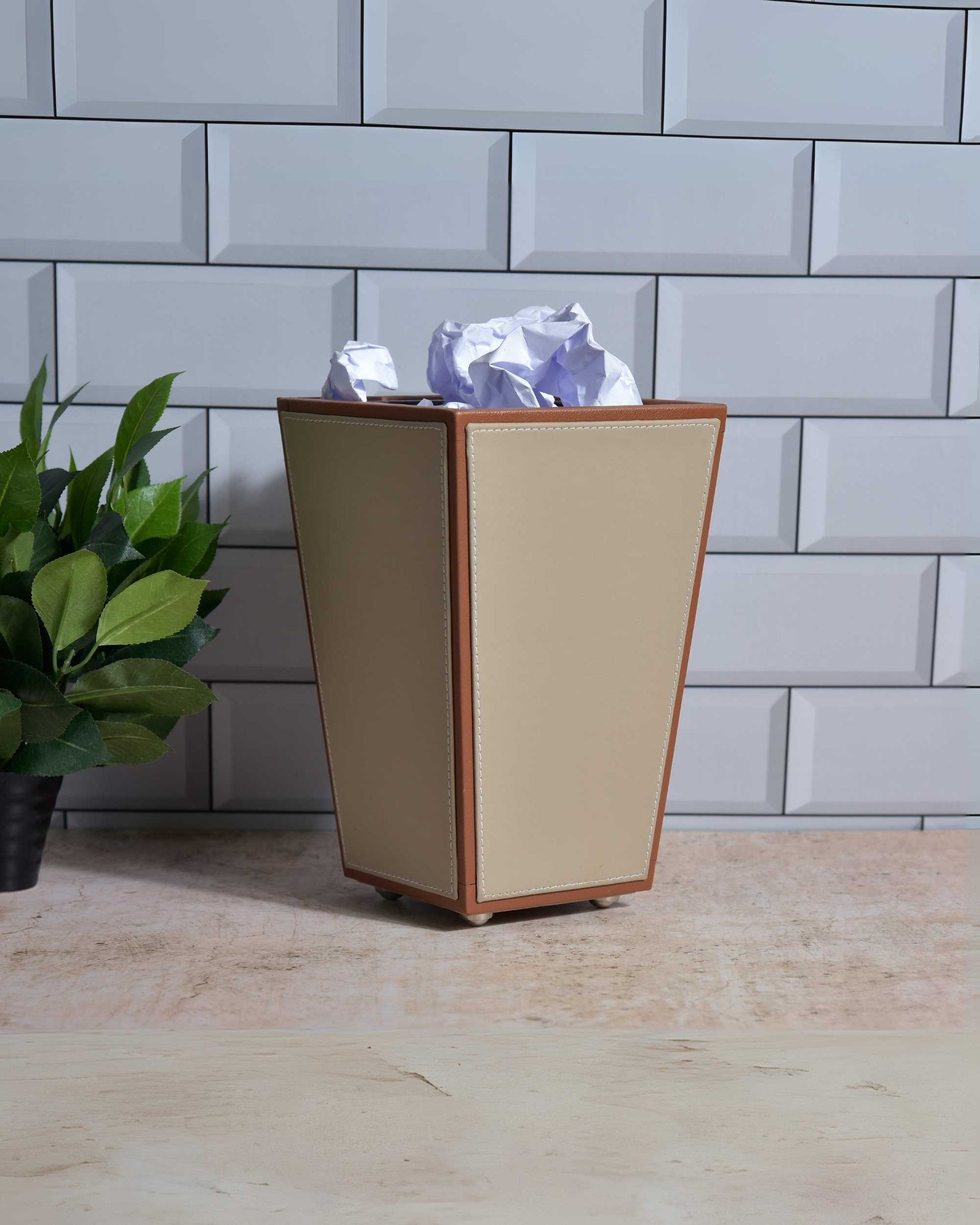 Premsons® Premium Faux Leather Dustbin - Sleek & Modern Waste Basket for Office & Living Room - Two Tone - Cone Shaped - Beige with Orange - 2.5 Litres