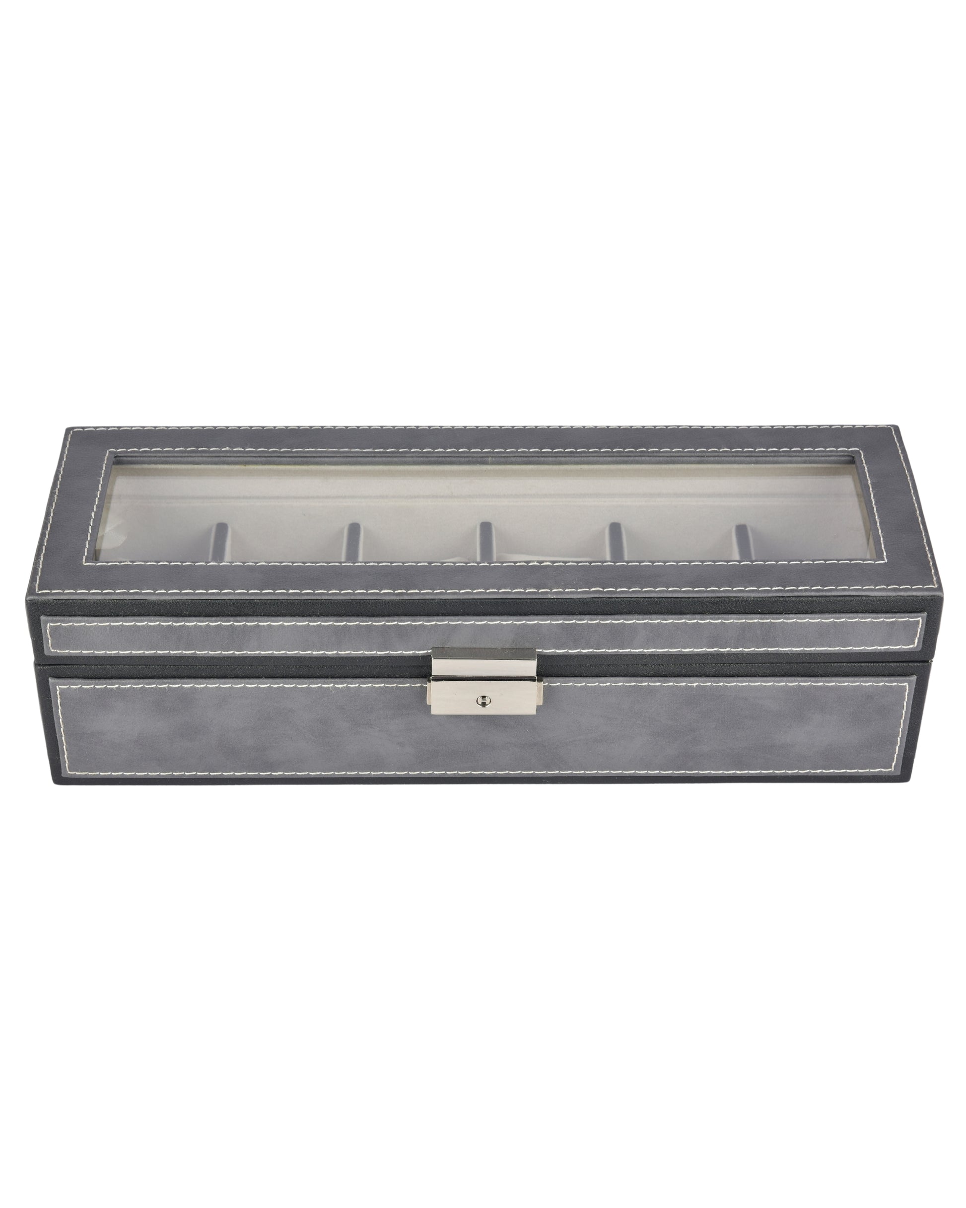 Premsons® Premium Leatherette 6-Slot Watch Box Holder and Organizer Case for Men and Women | Elegant Storage for Watches | Grey & Black