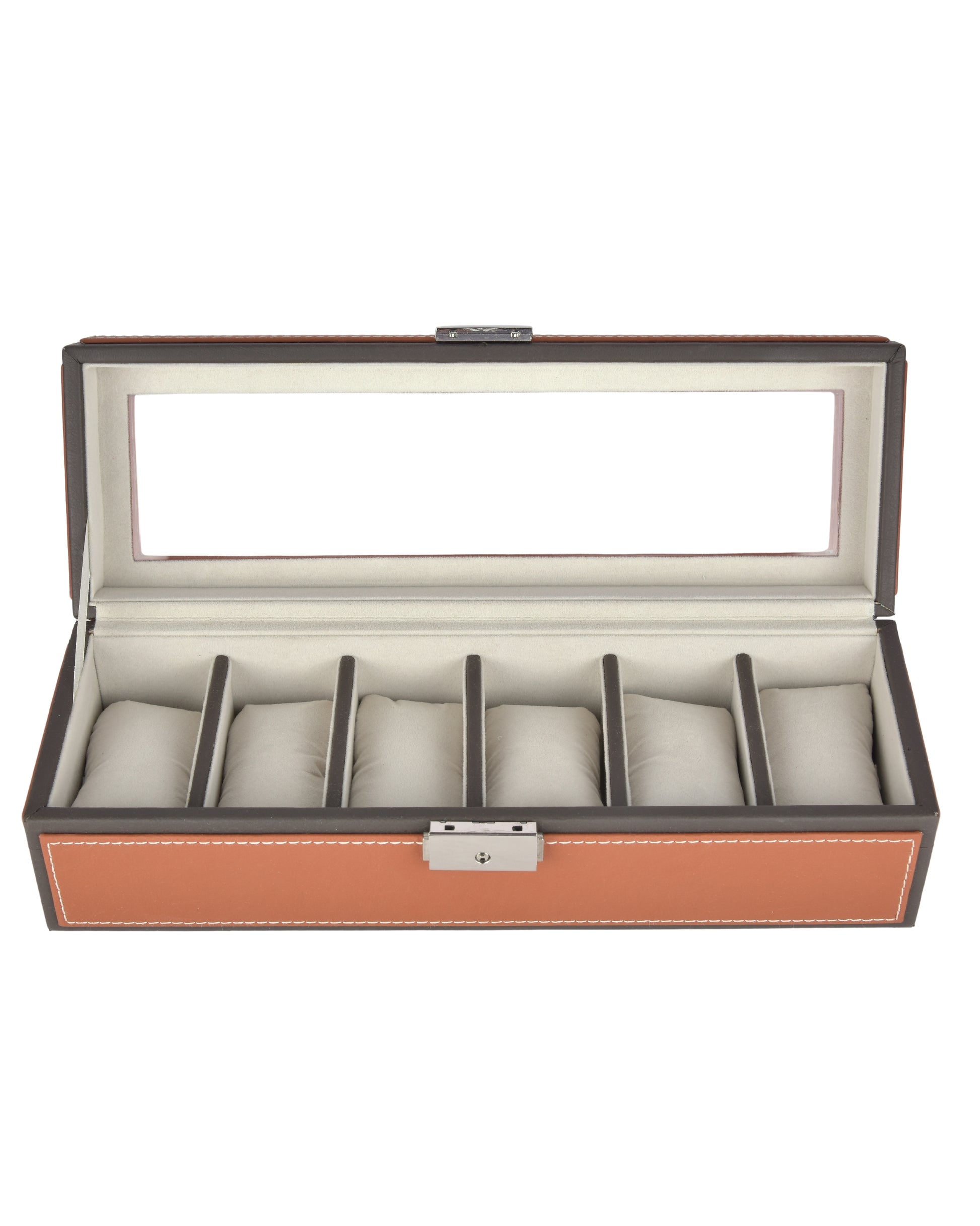 Premsons® Premium Leatherette 6-Slot Watch Box Holder and Organizer Case for Men and Women | Elegant Storage for Watches | Orange & Grey
