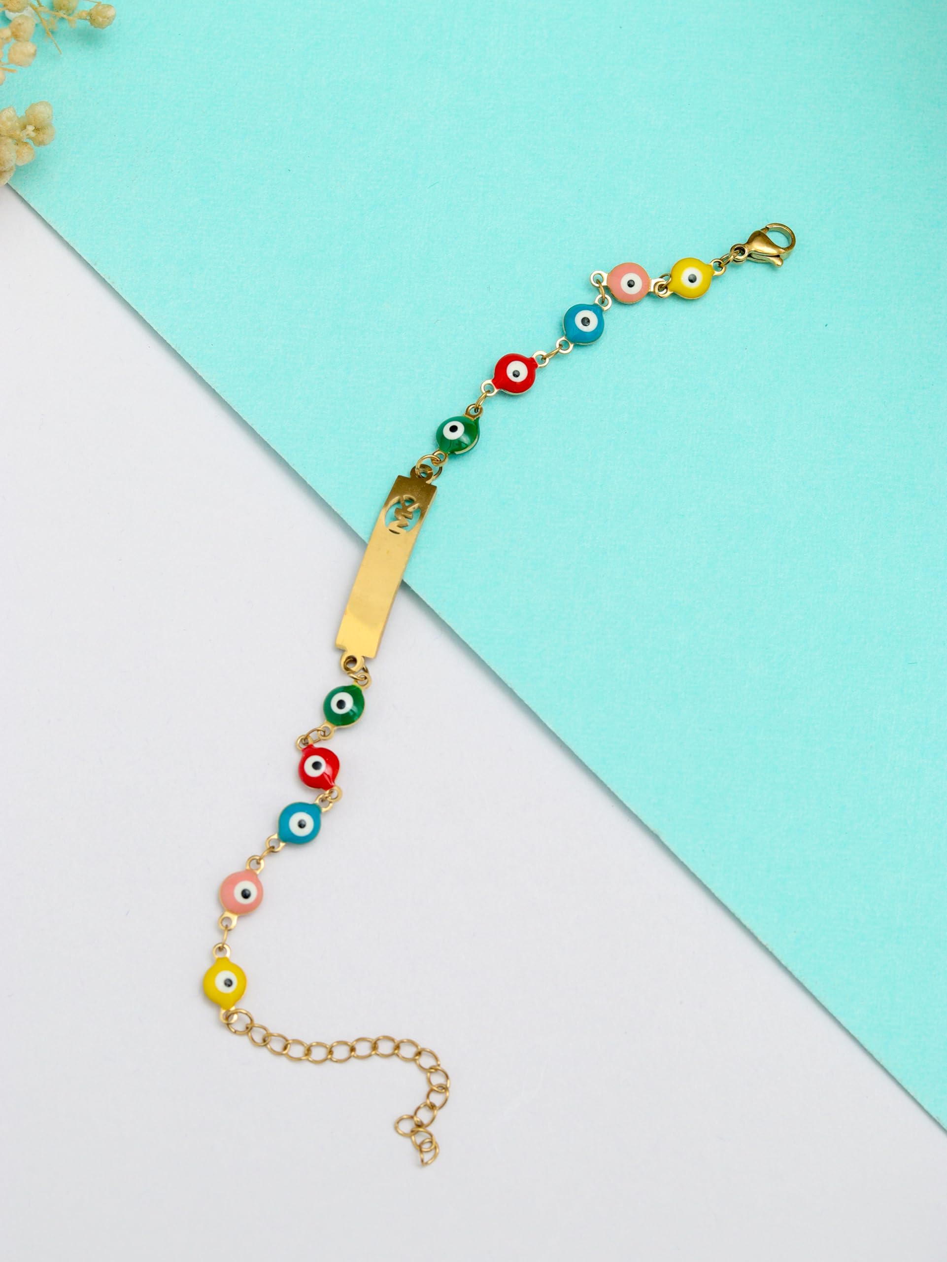 Premsons® Stainless Steel Evil Eye Bracelet – Gold-Plated Protection Charm for Women & Girls - Multicolor