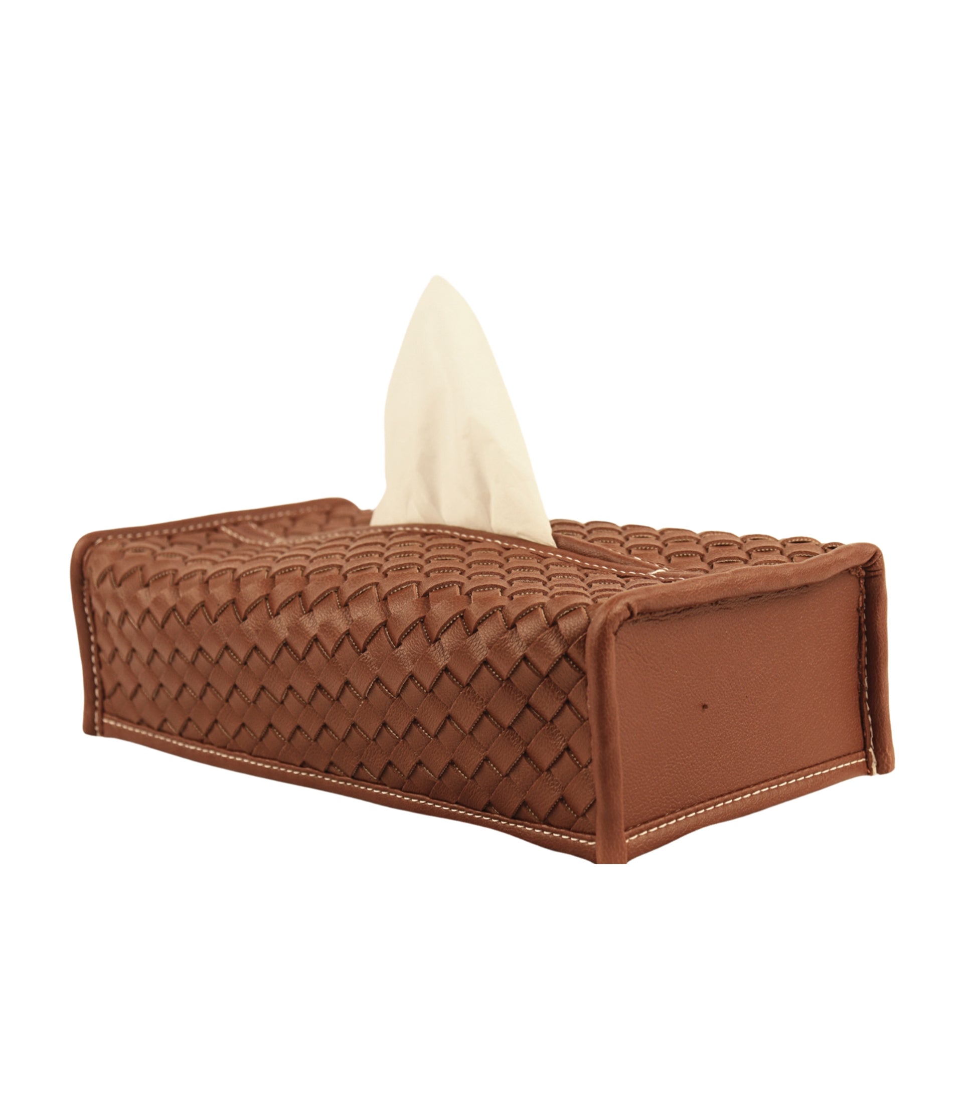 Premsons® Woven Design Artificial Faux Vegan Leatherette Tissue Paper Box for Dining Room Kitchen Bedroom Car and Home Décor (Brown, Rectangular Sleeve)