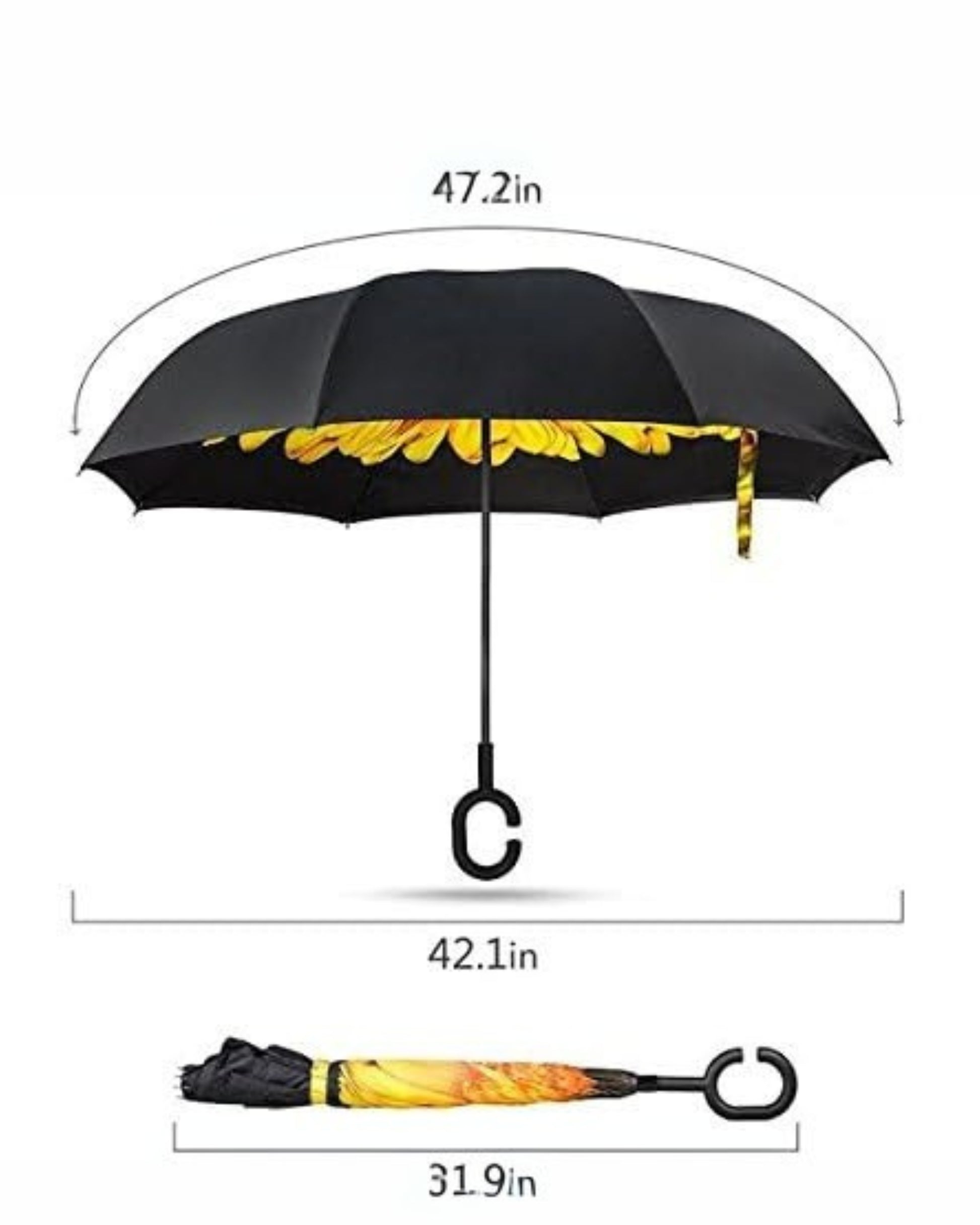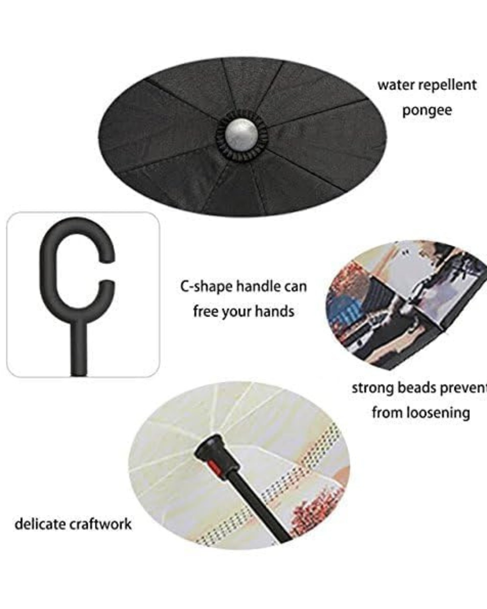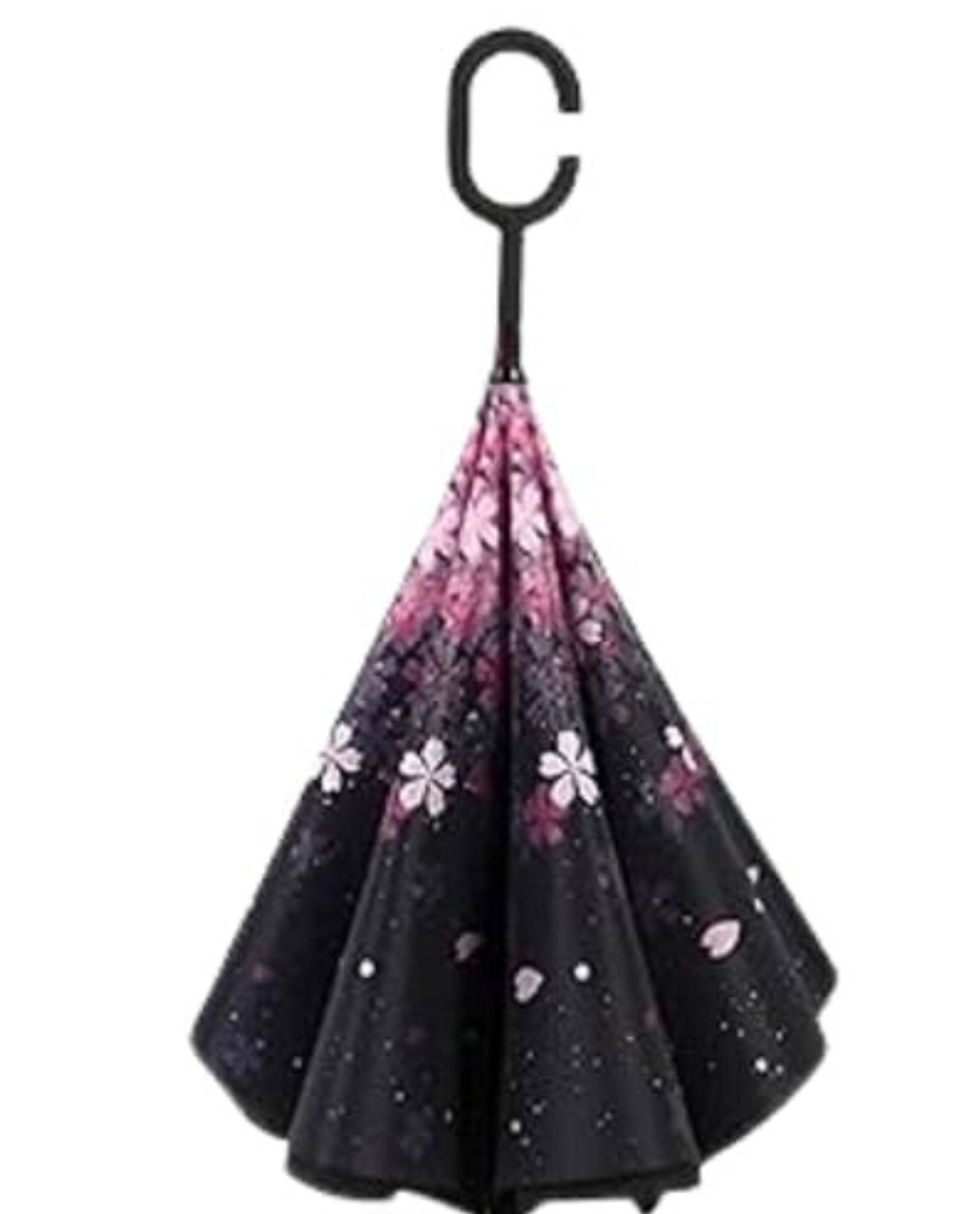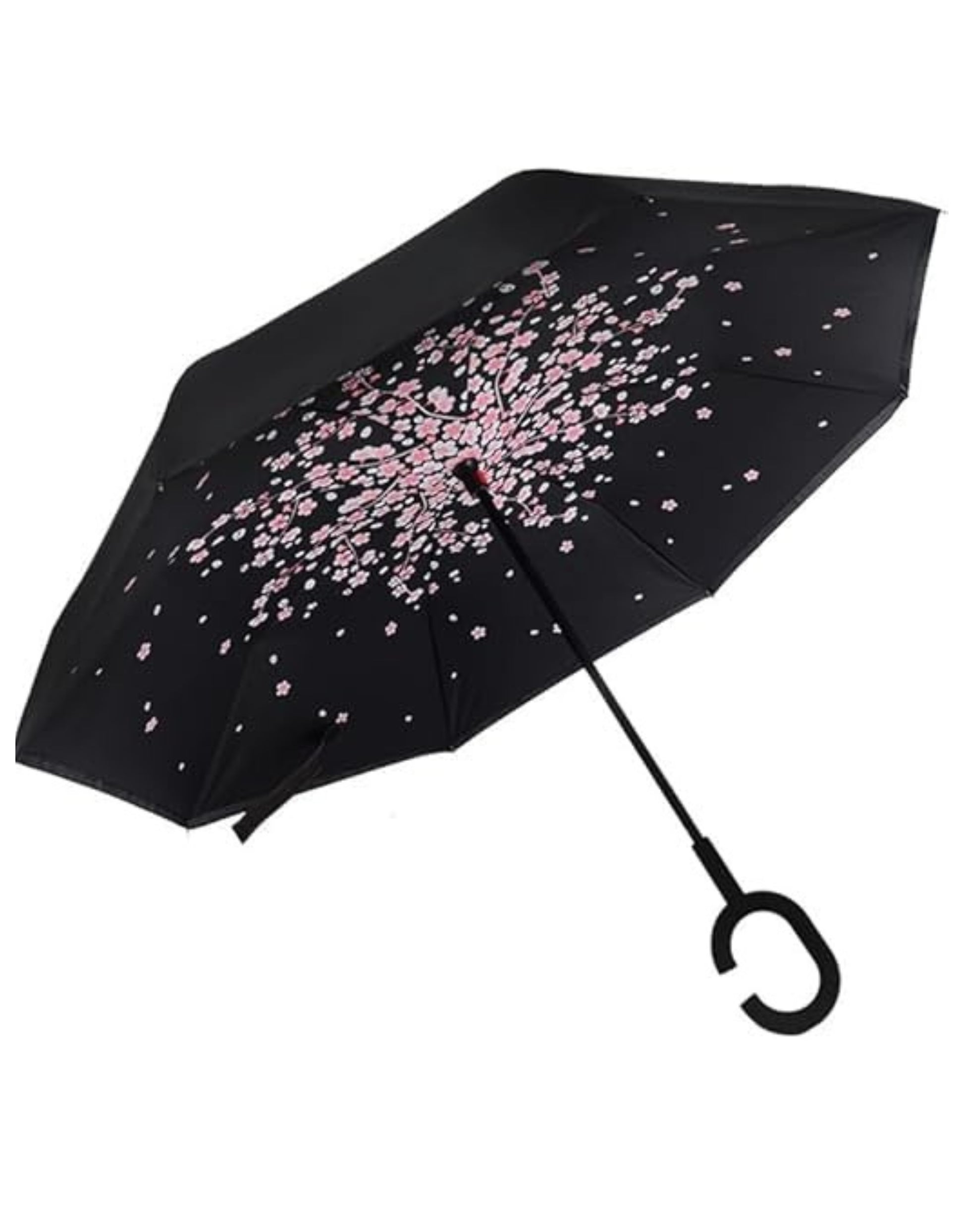 Add elegance to rainy days with the Upside Down® Inverted Umbrella featuring a striking flower print inside. Designed with a windproof double layer and smart reverse folding, it’s perfect for easy car entry, travel, and hands-free use.