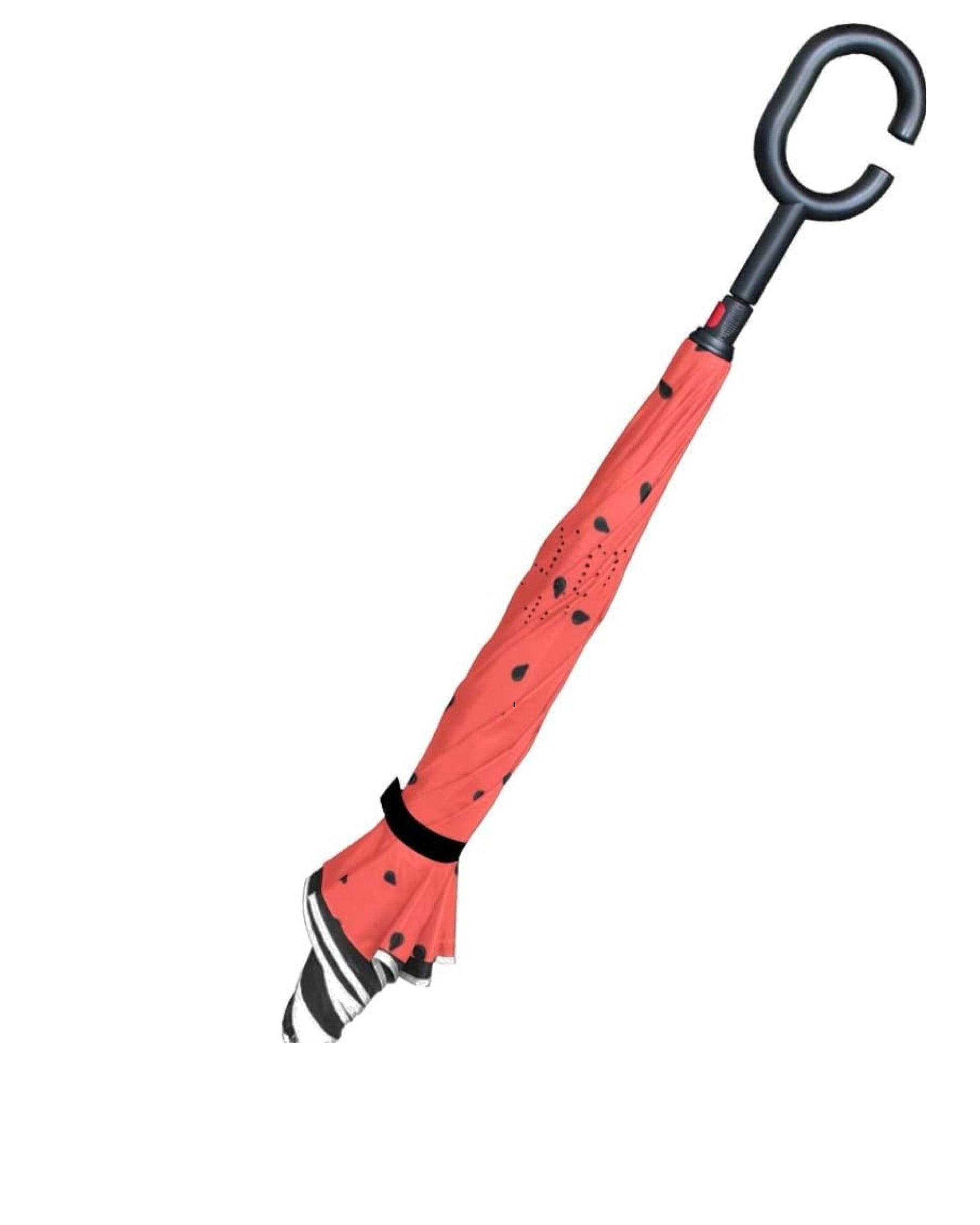 Stay dry in style with the Upside Down® Windproof Inverted Umbrella! Featuring a vibrant red inner layer with a watermelon seed print and a unique reverse folding design, this double-layered umbrella offers superior wind resistance and drip-free convenience. Ideal for cars, commutes, and rainy-day strolls.
